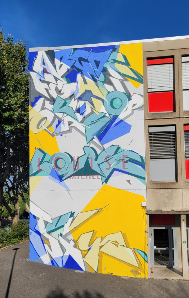 Fresque réalisée lors de l’édition 2023 sur la façade de l’Ecole Louise MIchel.