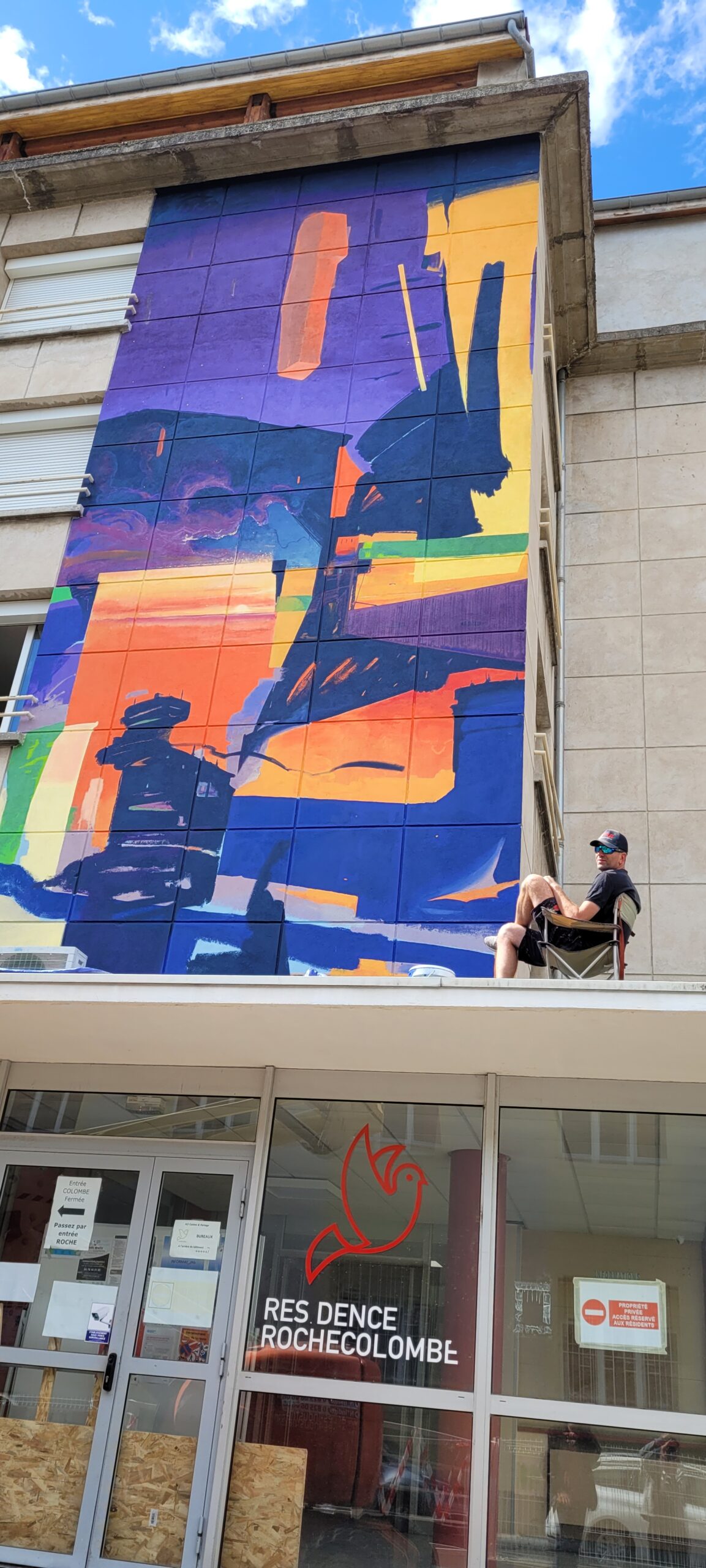 Le temps de réalisation de la fresque a donné lieu à une rencontre entre l’artiste et les habitants de la résidence Rochecolombe.