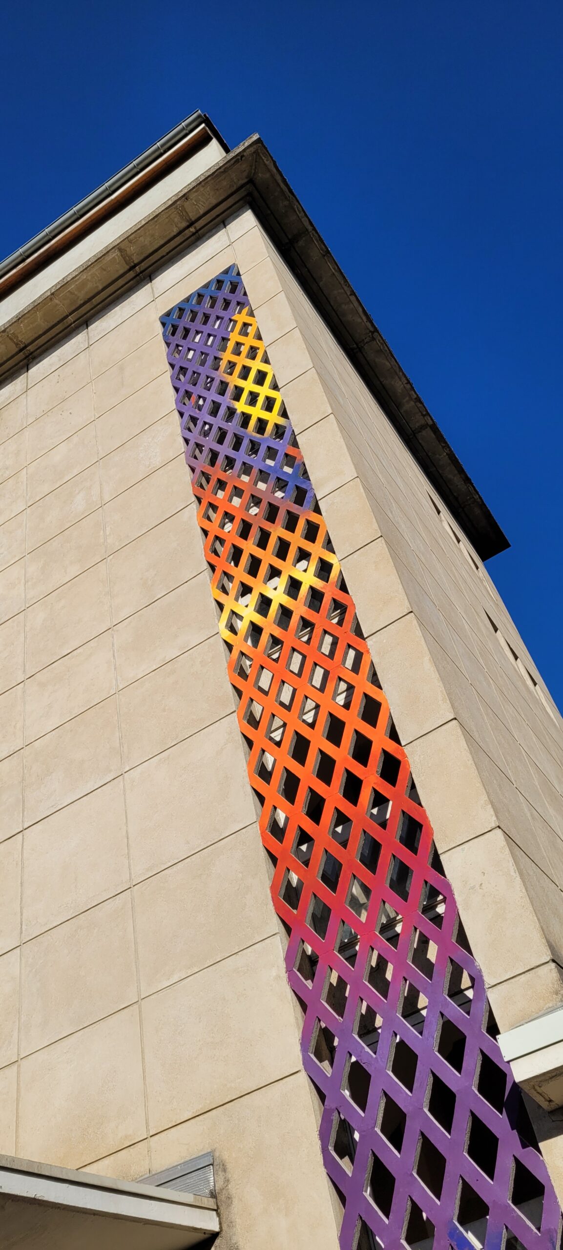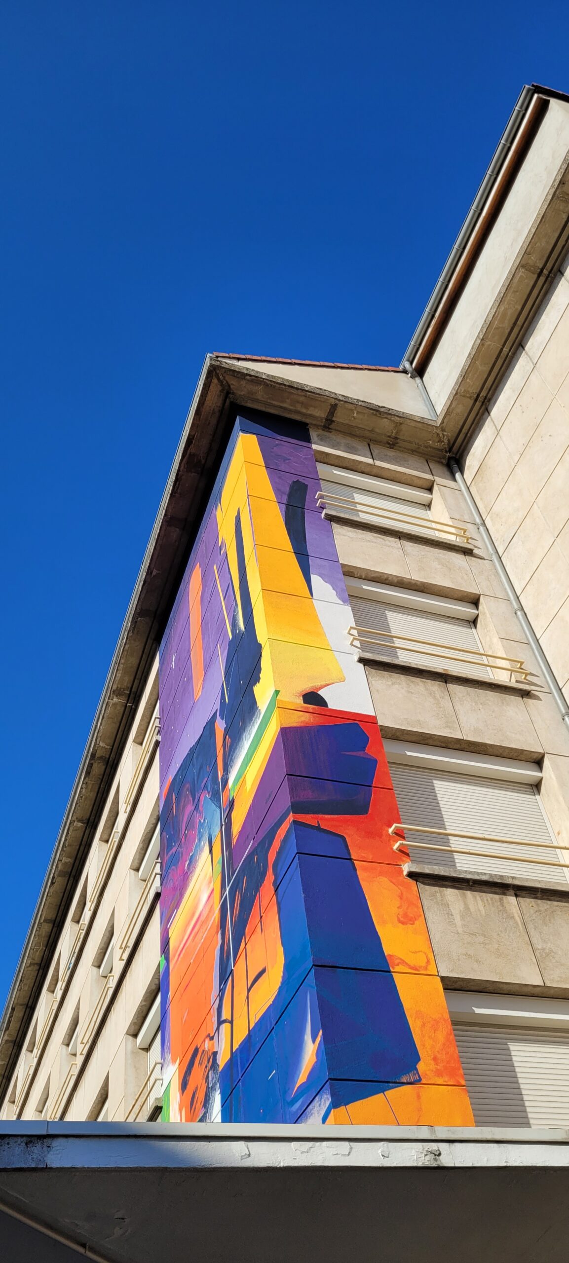 Heng est un artiste muraliste vivant à Marseille dont le travail graphique se saisit des codes de l’architecture et de ses motifs. Compositions abstraites, colorées, il déconstruit le paysage urbain et crée des paysages aux allures futuristes d’une grande intensité.